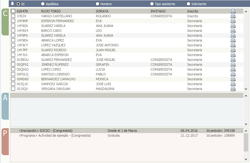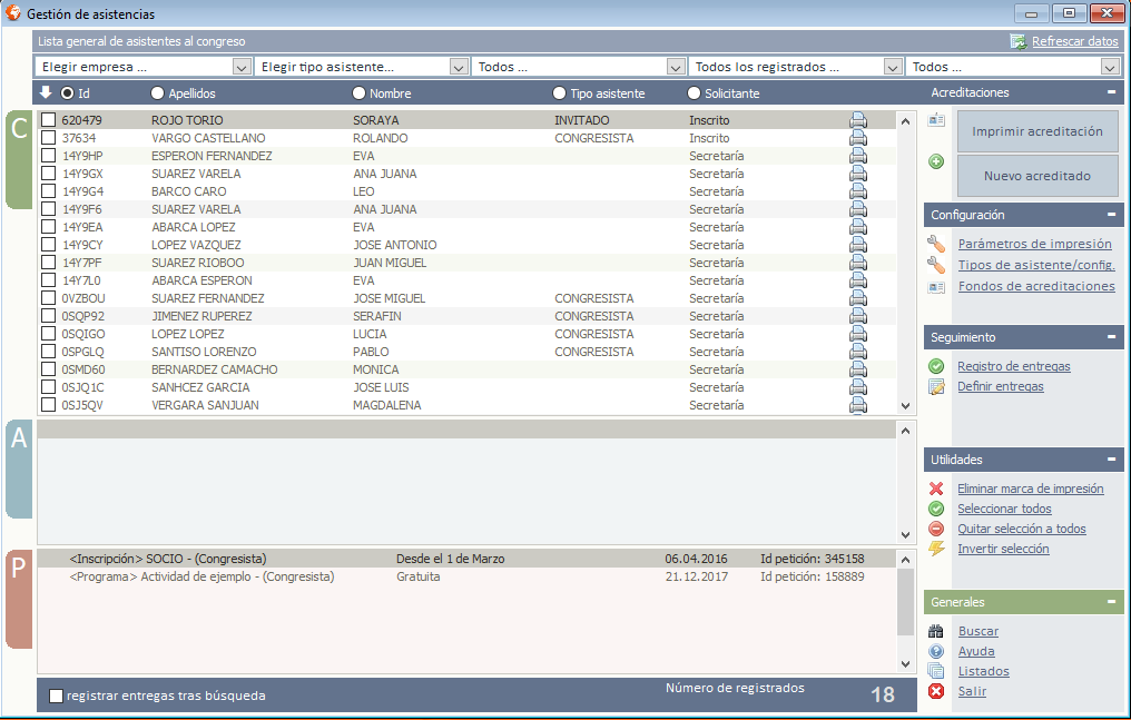 Tipo de asistente: Filtra el listado por el tipo de asistente que se ha definido en cada congresista.