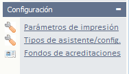 Parámetros de impresión: A la hora de imprimir acreditaciones, cada TIPO DE ASISTENTE tiene que llevar asignado una forma de imprimir la acreditación. En este panel se crean los parámetros de impresión de la acreditación para el evento, que en la siguiente opción se asignarán a cada TIPO DE ASISTENTE definido.