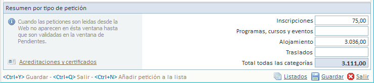 El pie de la ventana nos enseñará los importes totales y parciales de las peticiones/solicitudes de este congresista en concreto.